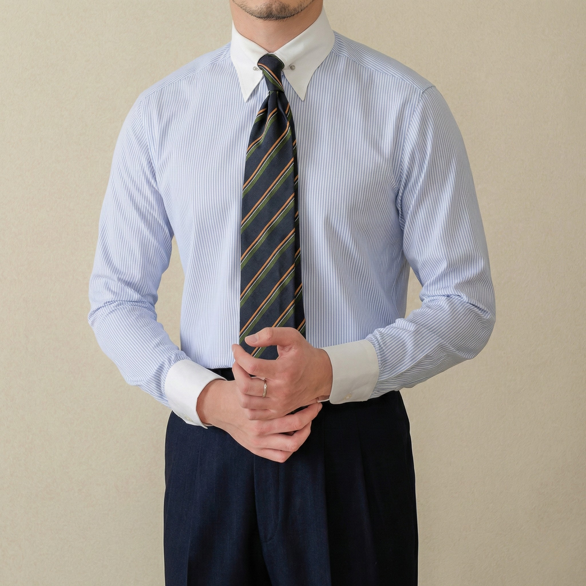 The Winchester—characterized by its crisp white collar and cuffs against a colored or patterned body—has long been a symbol of status and sartorial expertise. Harold International has refined this icon, adding a specialized Collar Bar that bridges the collar points, physically lifting the tie knot to create a bold, arched profile that exudes authority.